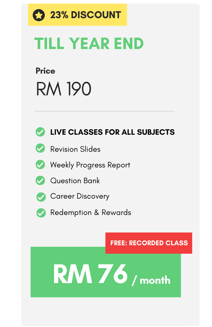 We aspire to provide accessible and affordable quality education to every student around Malaysia.